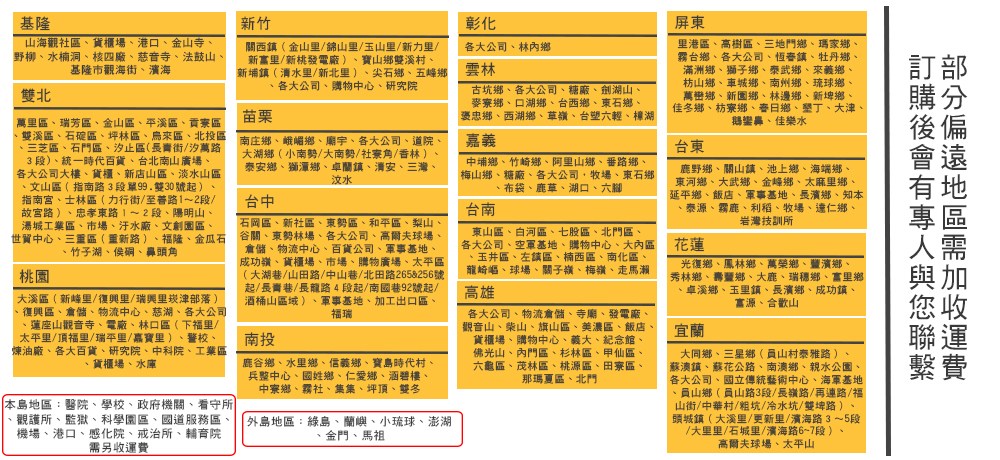 2.偏遠地區定義是由貨運公司決定的喔 偏遠地區如需另加運費 會有專人與您聯繫.謝謝