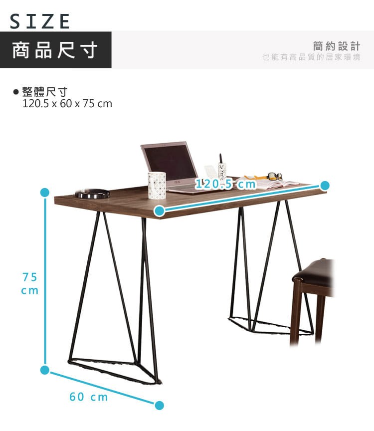 【頂堅】長方形書桌/餐桌/洽談桌-寬120x深40x高75公分-三色深胡桃木色