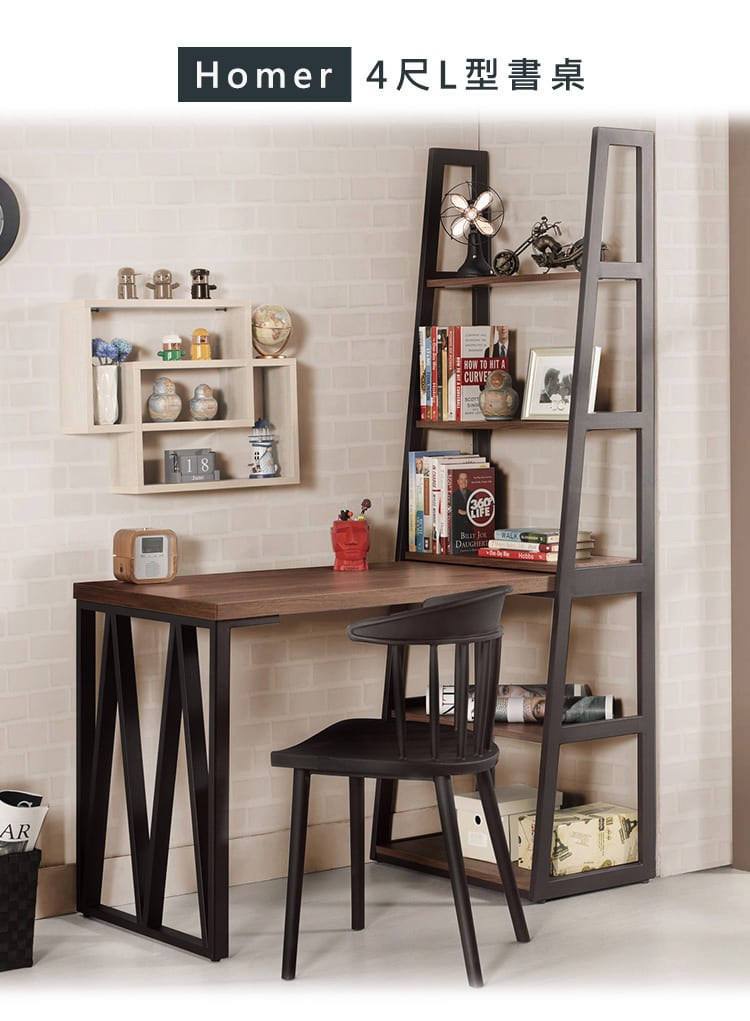 ASSARI-伯恩斯4尺L型鐵架書桌(寬122x深64x高180cm)