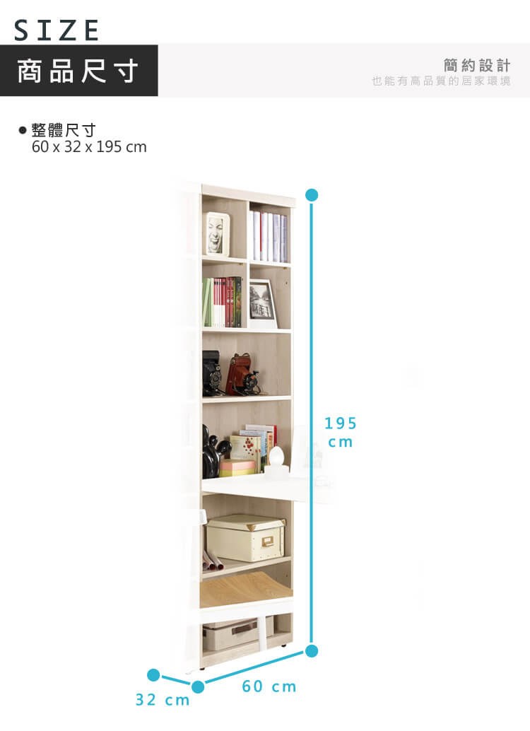 Birdie南亞塑鋼-2.7尺開放式6格右上單門書櫃/六格一門收納櫃/展示櫃/置物櫃(白橡色)-80.2x32.5x200cm