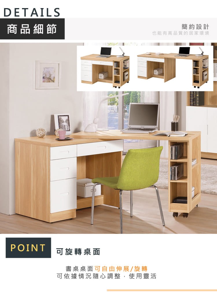 Boden-恩洛6.9尺多功能L型伸縮旋轉九抽書桌/工作桌/辦公桌(桌面5尺+5尺-兩色可選)-206x150x76cm