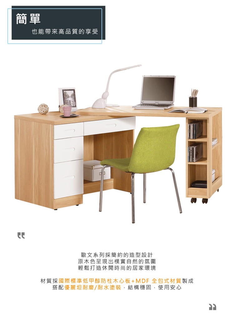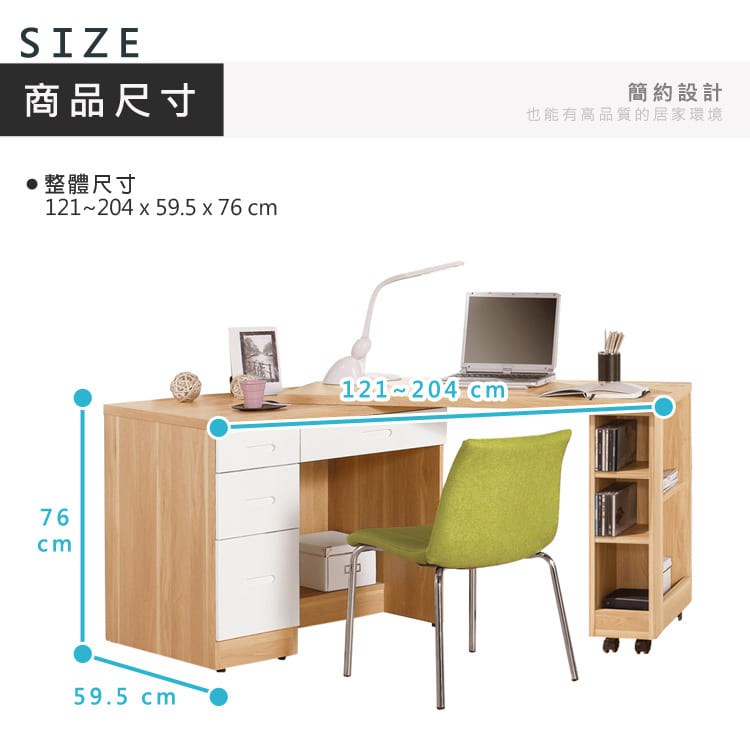 直人木業-NINA北歐簡約風可調整L型書桌組121-185公分