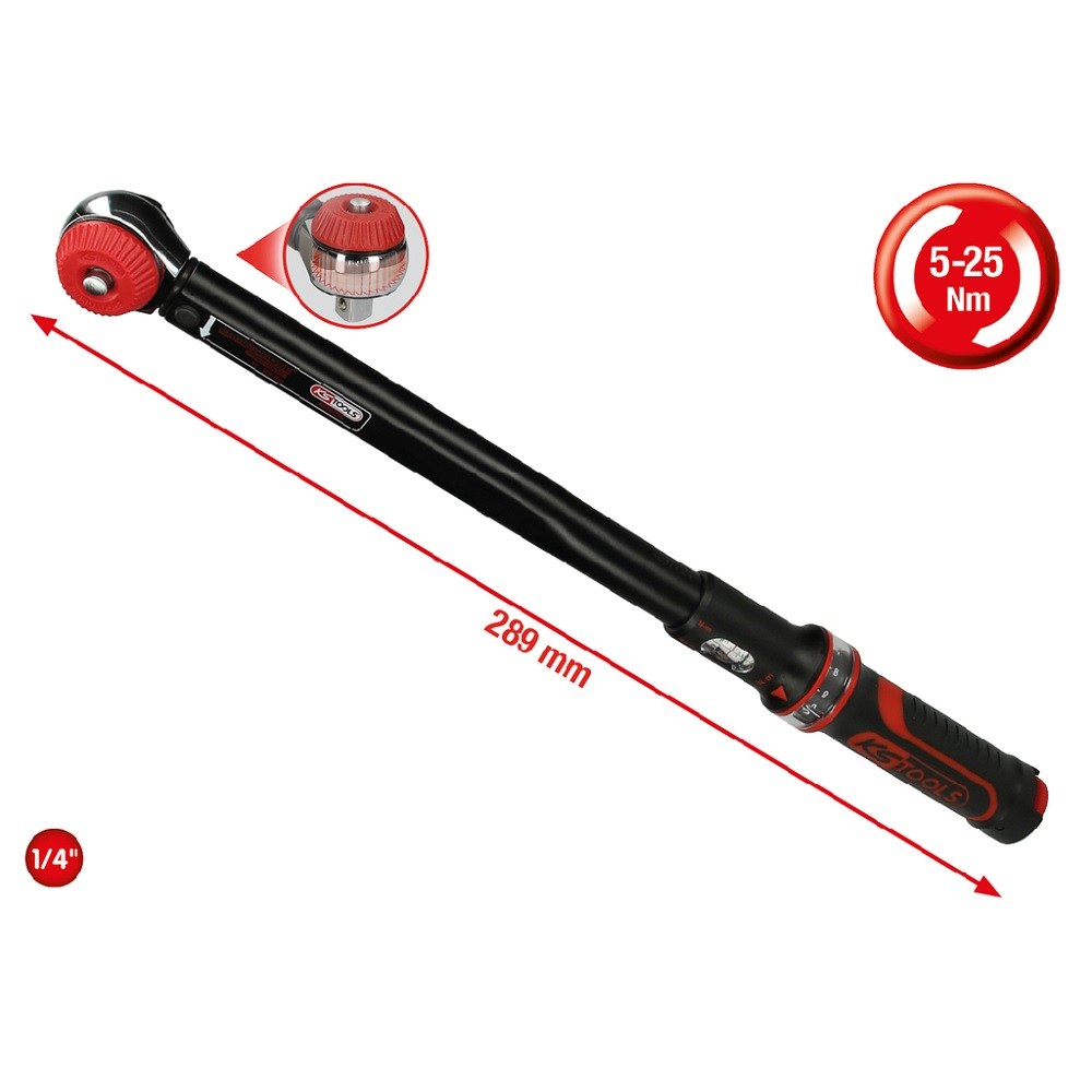 KS 1/4" 精密扭矩扳手,帶旋轉蘑菇棘輪頭,5-25Nm