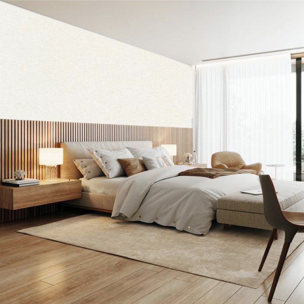 2.將壁紙鋪於被貼物表面,四邊一定要與被貼物對齊,對齊後撕開背面保護膜,將壁紙固定於被貼物上。