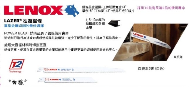 (5片裝)狼牌 LENOX 610R 長度 6" 齒數 10T 金屬軍刀鋸片 適用 金屬 塑膠 木材