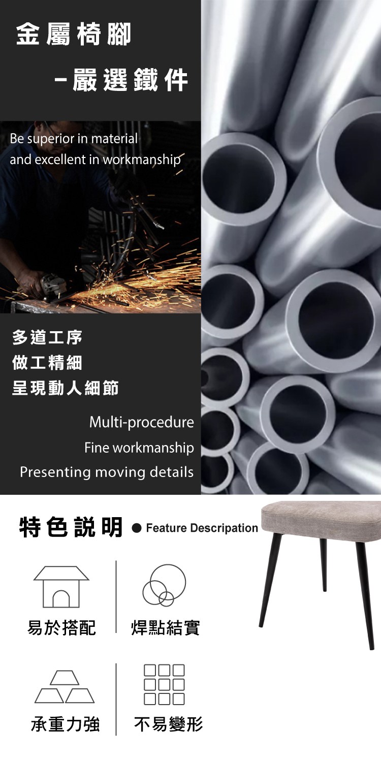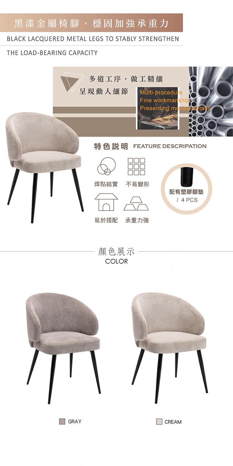 * 黑漆金屬椅腳,穩固加強承重力