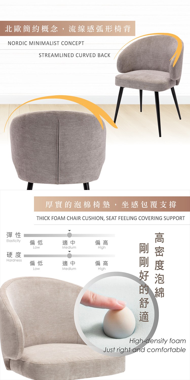 * 北歐簡約概念,流線感弧形椅背