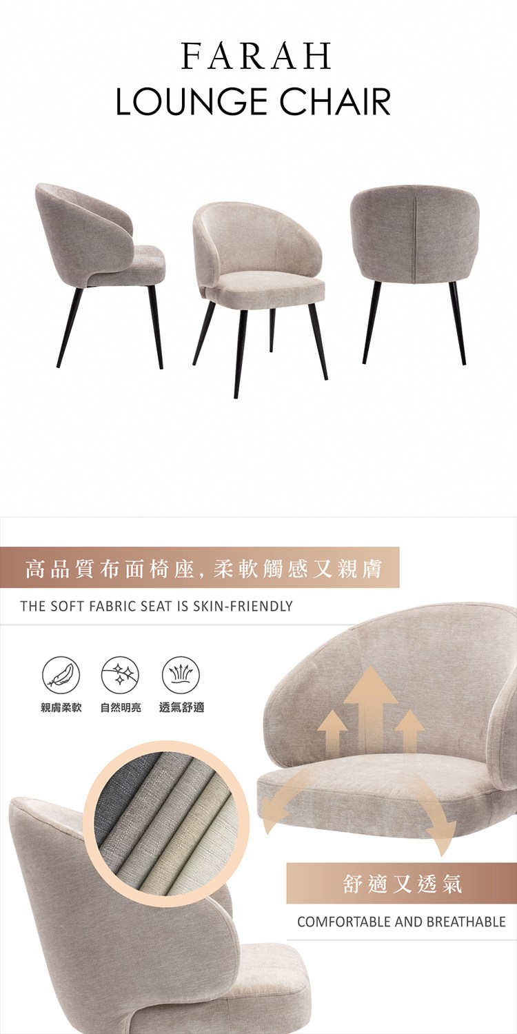 [E-home]Farah法拉簡約布面扶手休閒椅的北歐簡約概念讓您輕鬆徜徉在自然、舒適的環境空間中做最潮的主人,好友聚會、晚宴的時尚元素。