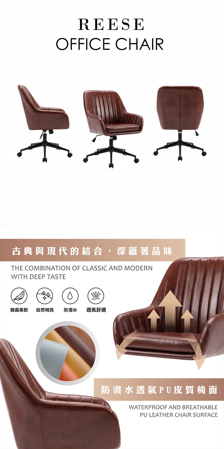 [E-home]Reese里斯簡約直紋皮質扶手電腦椅,明確的工業風格、打造您的個性生活,成就居家或辦公的空間品味。