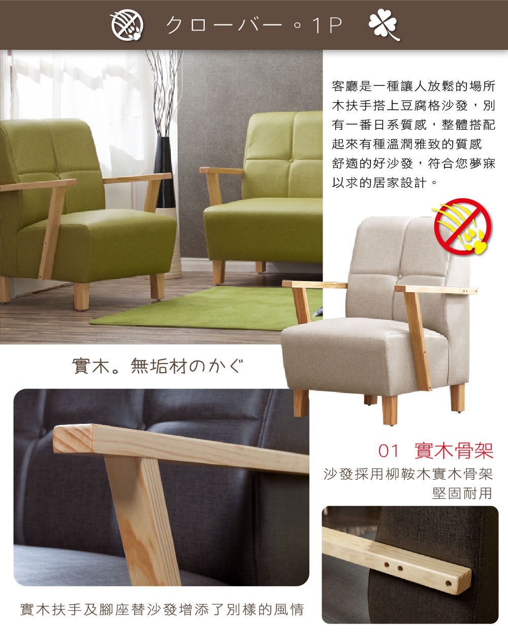 【久澤木柞】WF- 幸運草亞麻皮一人沙發 單人沙發-亞麻咖啡