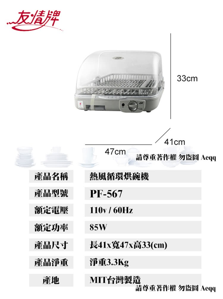 友情牌 臥式熱循環烘碗機 PF-567 38公升 台灣製造 SGS認證