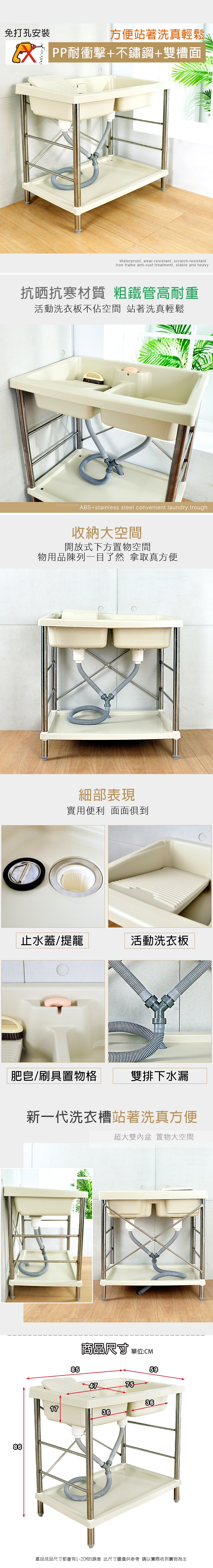 正台灣製高級品質防水防霉塑鋼材質 塑鋼材質穩固耐用洗衣槽,可自行組裝不須找裝潢師傅 輕鬆擁有洗衣槽,可方便站著洗真輕鬆 腰不痠背不痛