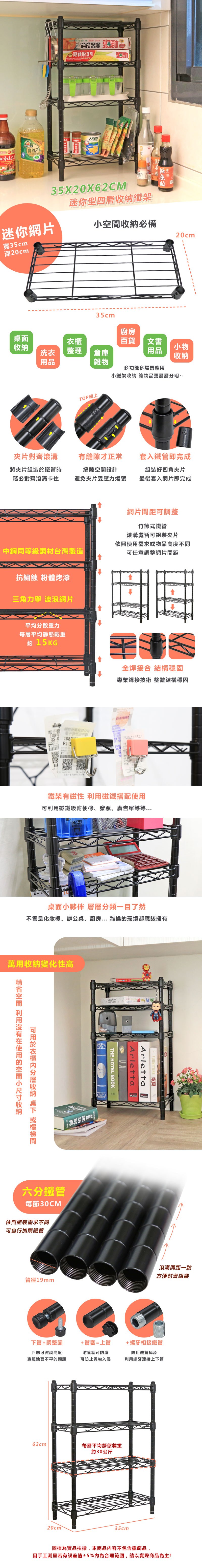 KI WISH 居家生活 輕型 整體耐重 200 KG MIT 46 x 40 x 120cm 黑色 4層