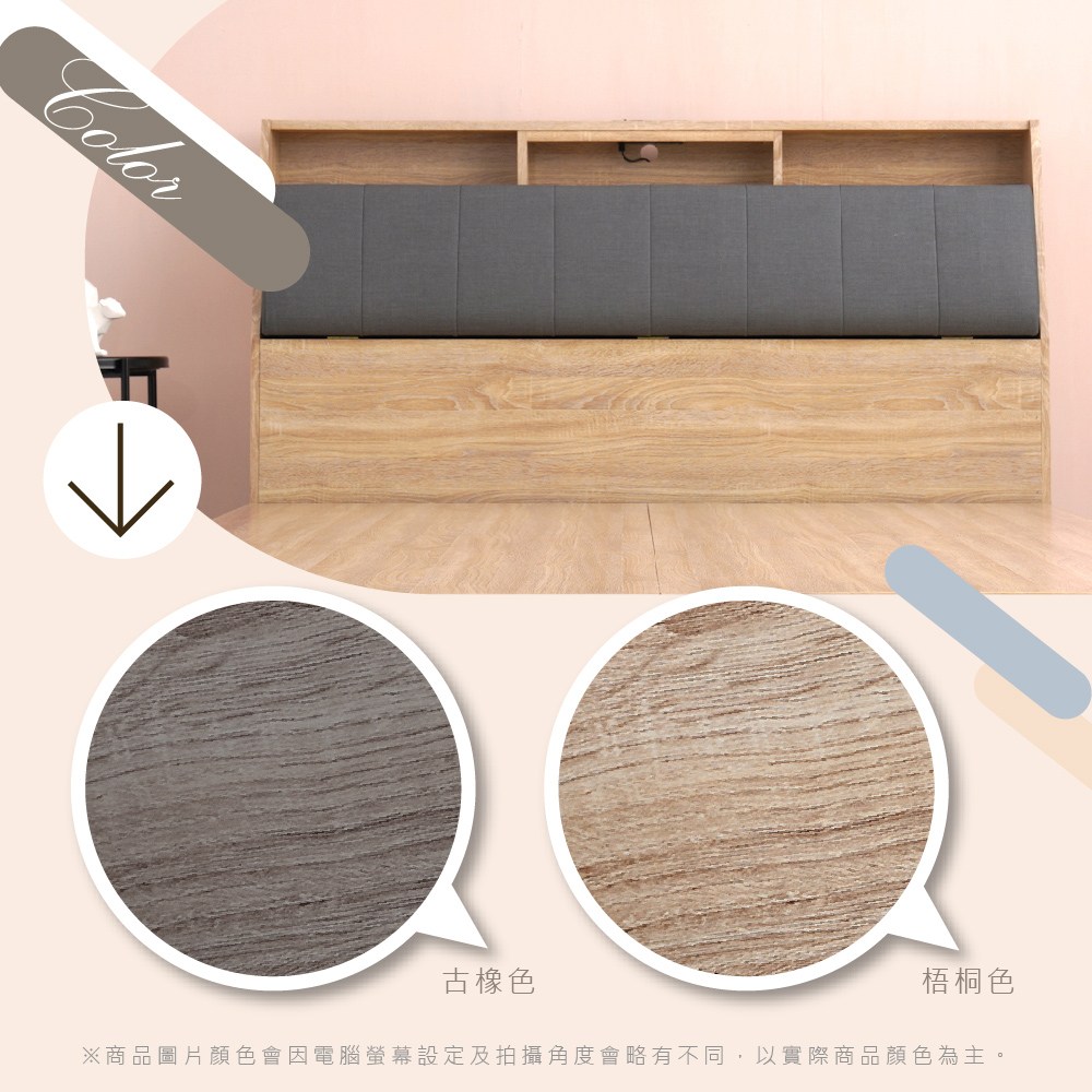 文創集 玄武侯5尺雙人可掀床頭箱(三色可選+充電插座設置)-152x30x102cm免組
