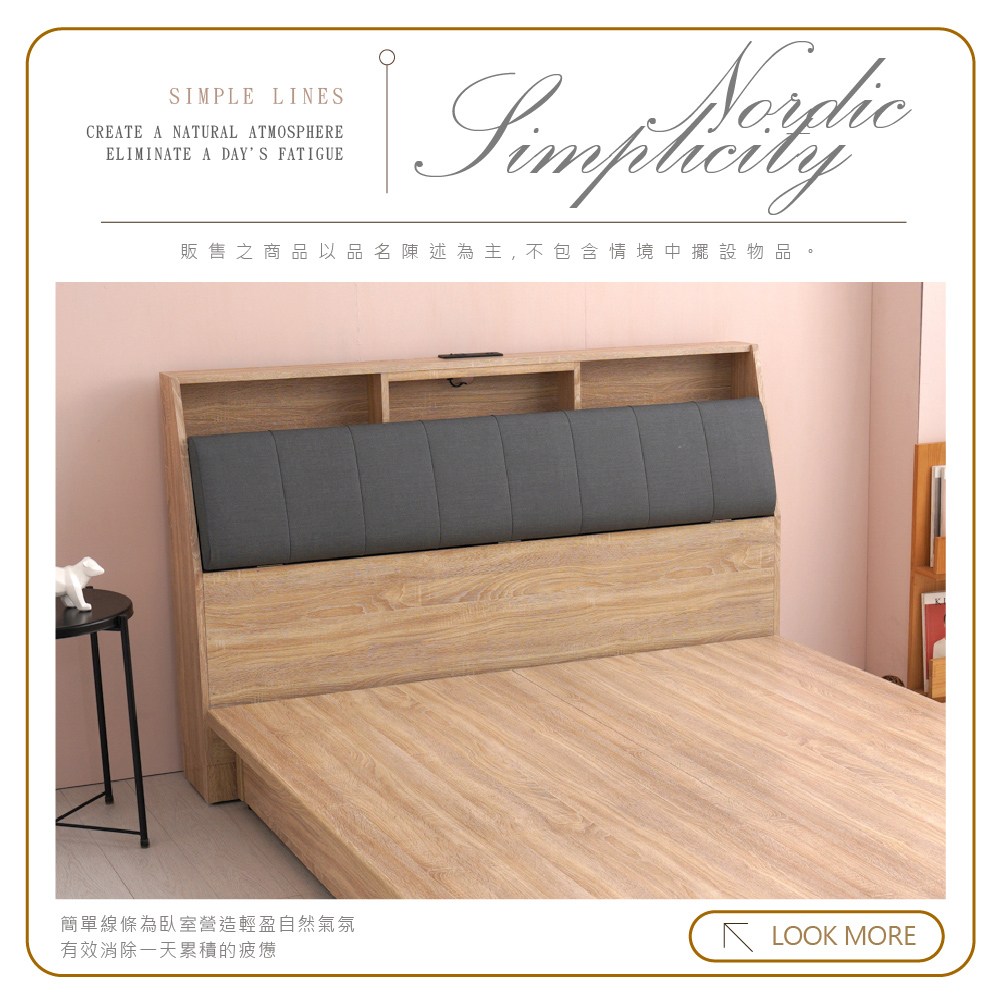 【本木】夏洛特 USB插座貓抓皮收納床頭-雙人5尺梧桐