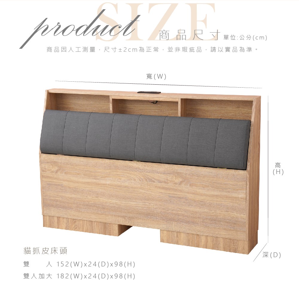 【本木】夏洛特 USB插座貓抓皮收納床頭-雙人5尺梧桐
