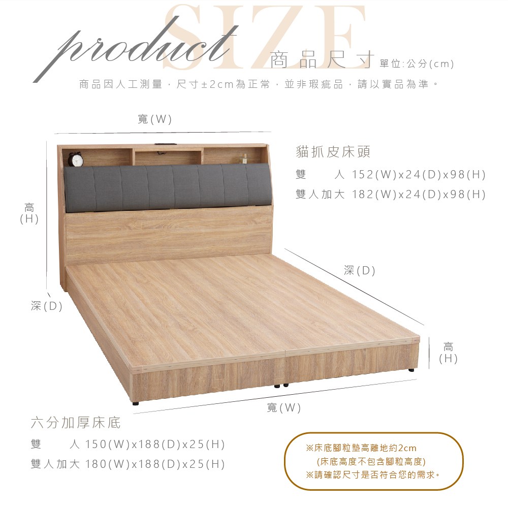 【本木】艾尼 USB插座貓抓皮雙大6尺房間三件組-床頭+床墊+六分底梧桐