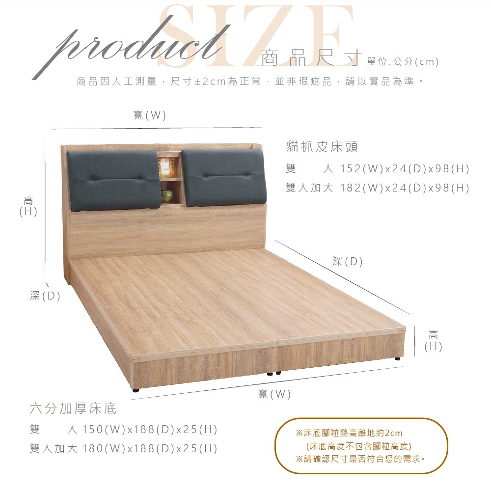 【本木】捷恩 貓抓皮臥室二件組-雙大6尺 床片+六分底古橡