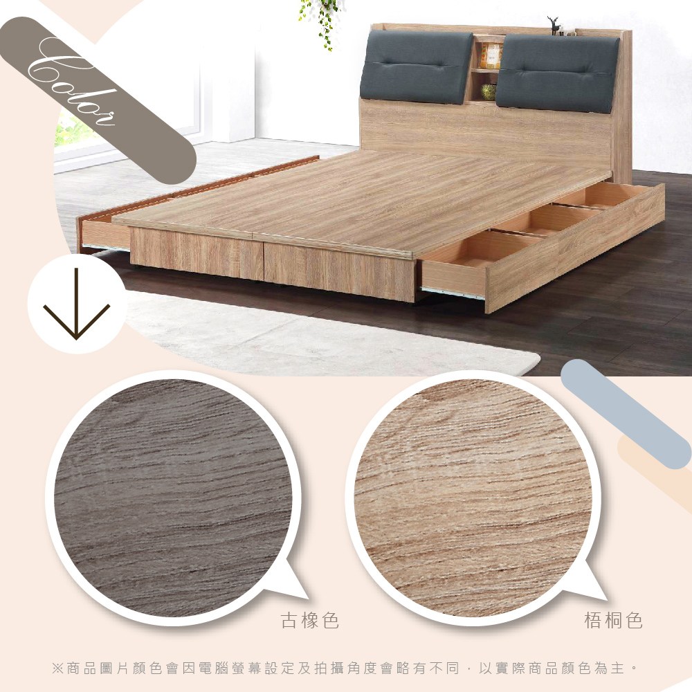 Homelike 喜家居雙人加大6尺六抽屜床組-原木色(2531)