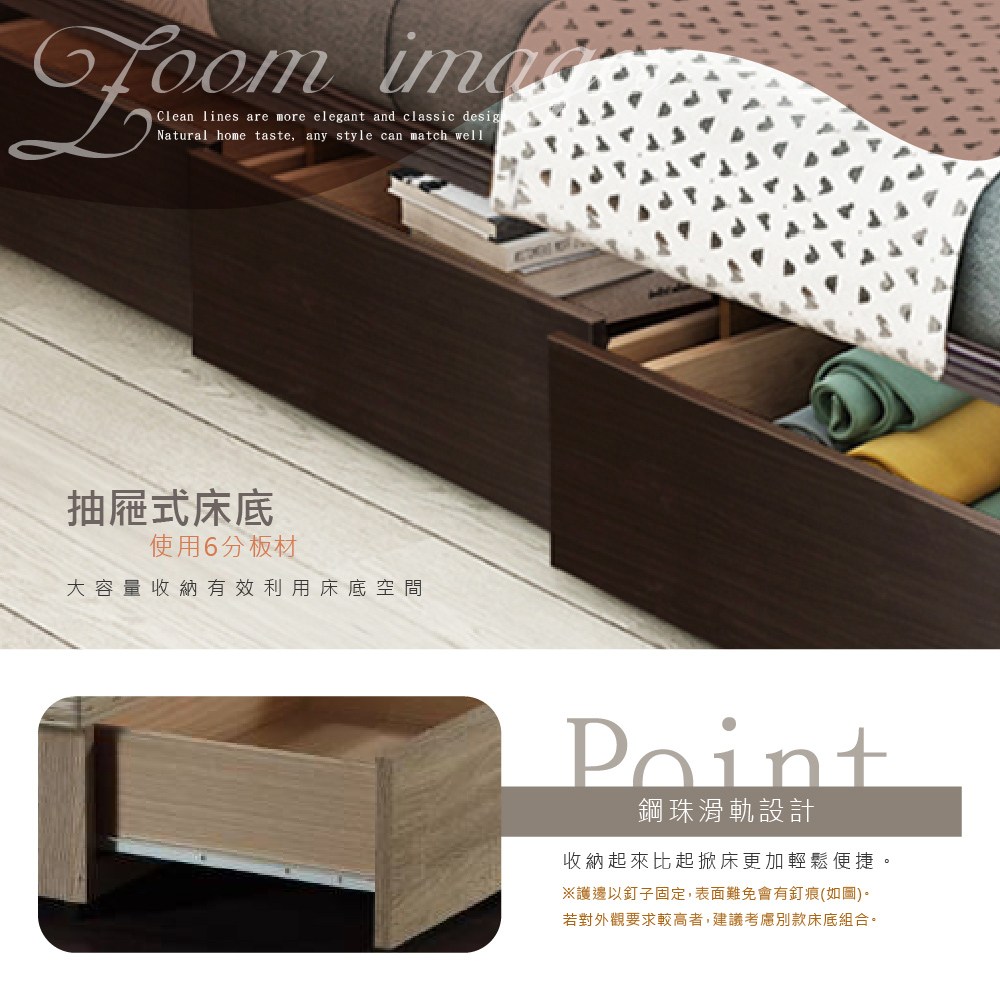 傢俱工場-派蒙 簡約收納房間2件組(床頭箱+六分床底)-雙大6尺古橡