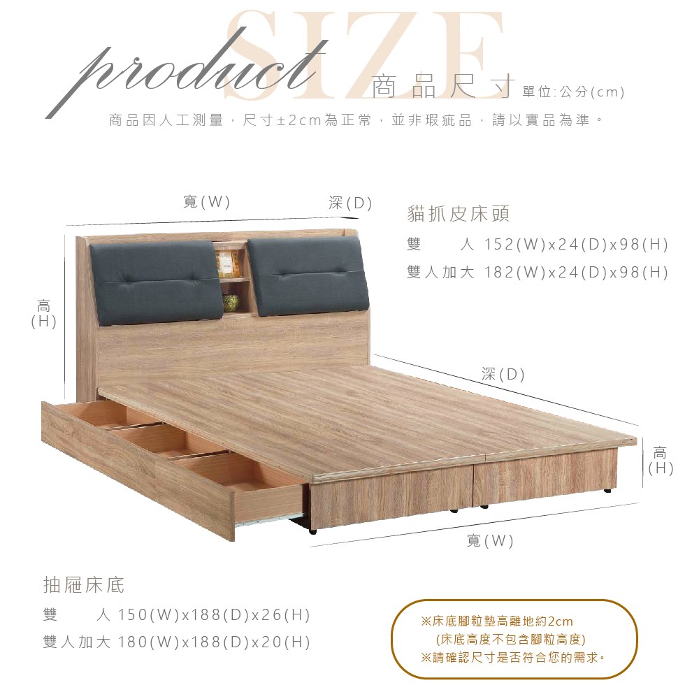 【本木】艾尼 USB插座貓抓皮雙人5尺房間三件組-床頭+床墊+抽屜底梧桐