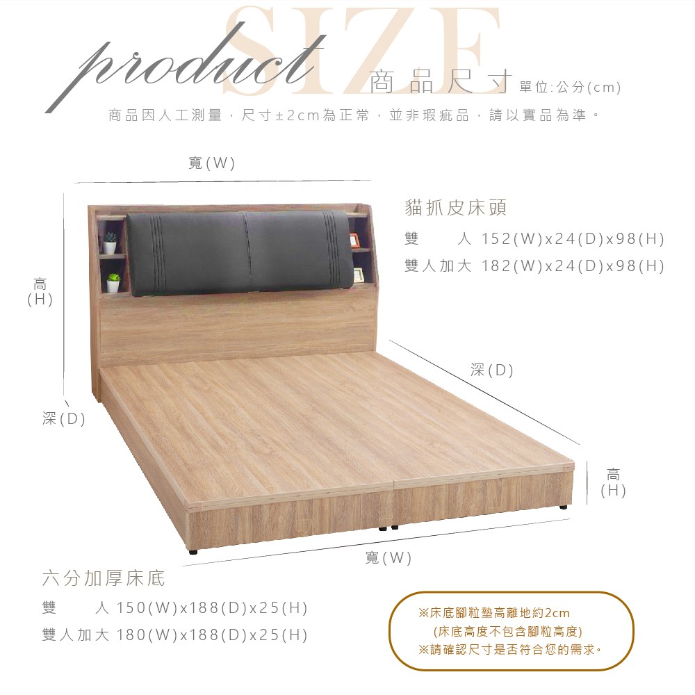 【本木】捷恩 貓抓皮臥室二件組-雙大6尺 床片+六分底古橡