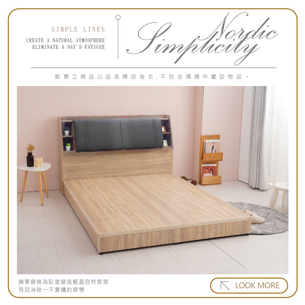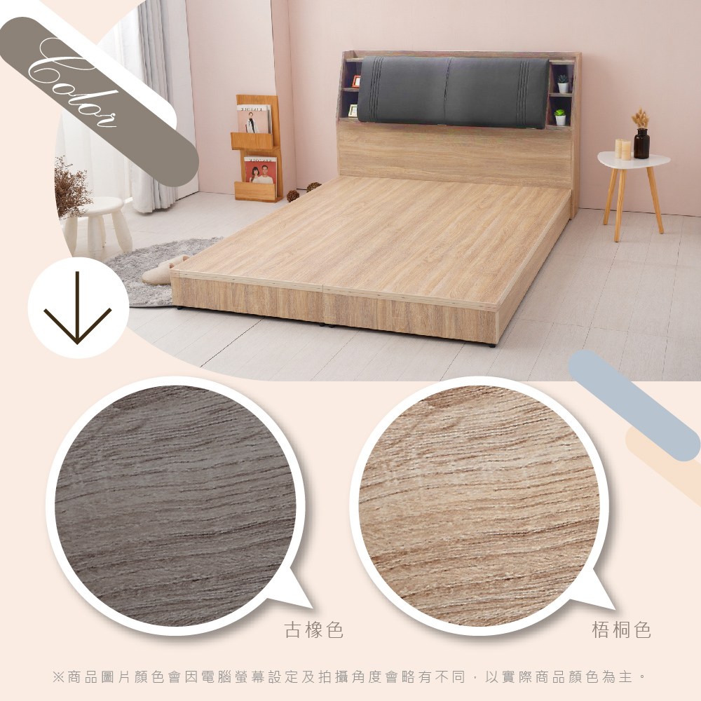 IHouse-沐森 房間2件組(插座床頭+床底) 單大3.5尺古橡