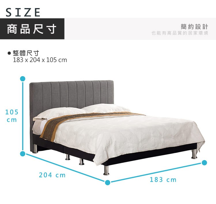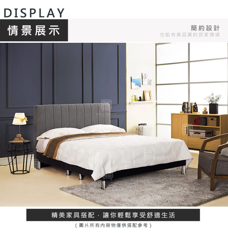 【H&D東稻家居】6尺雙人床(灰色布)(TCM-02569)