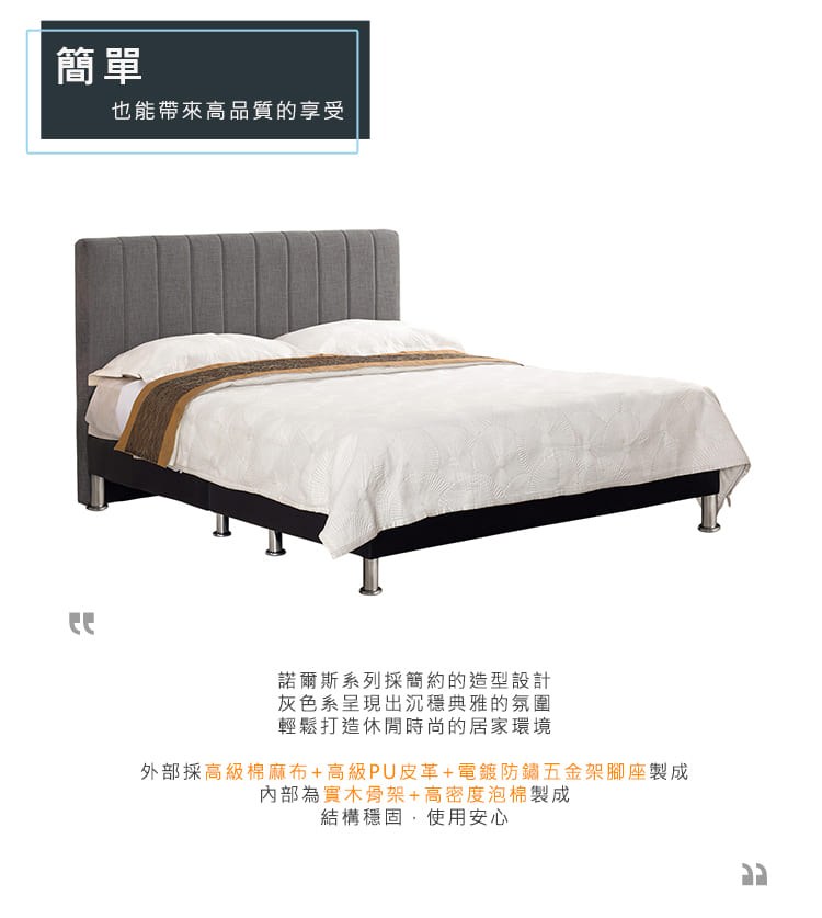 【Hampton 漢汀堡】諾爾斯6尺布面雙人床架