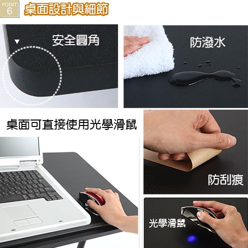 【4】桌面邊緣有防落檔條,當桌面角度傾斜時使用也不怕桌面上的物品掉落,是十分貼心的設計。