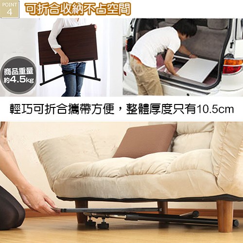 【3】可以完整的折疊收納,折起來後厚度僅有大約10cm、重量也大約只有5.2kg,方便移動到任何您想使用的位置,也易於折合收納在角落完全不占空間。