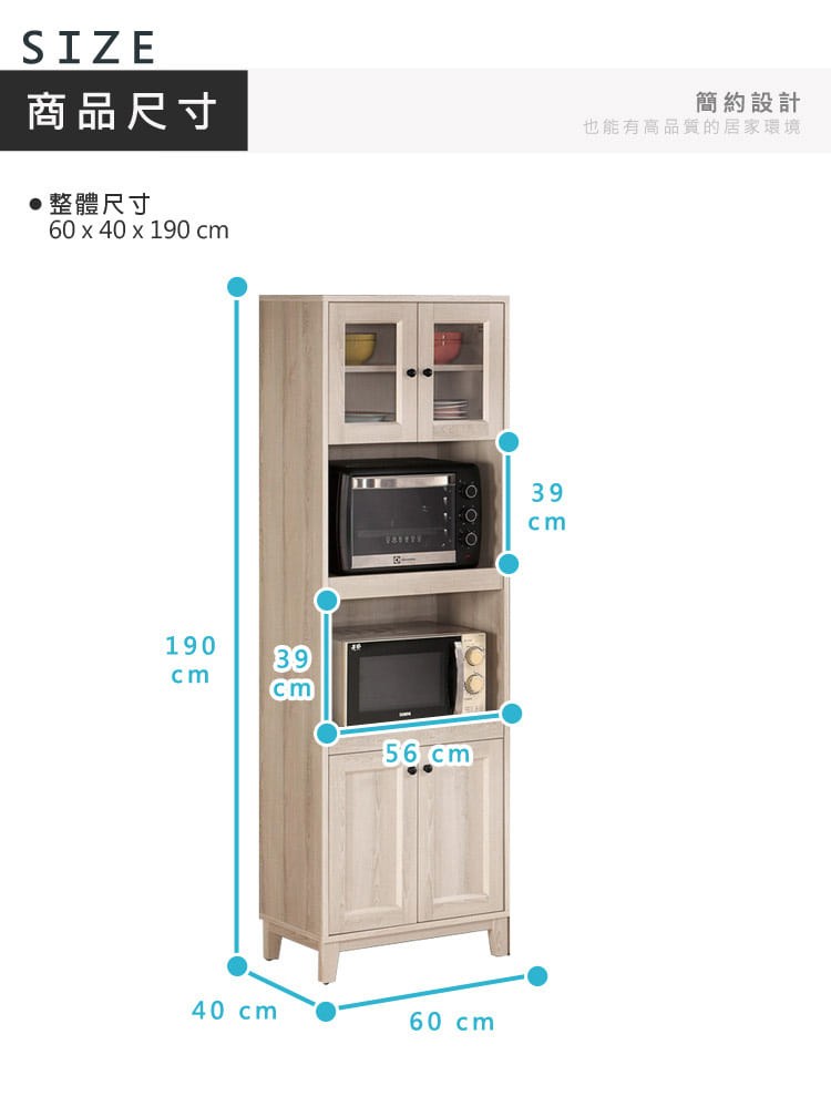 【文創集】紫羅 雙色2尺二門二抽高餐櫃-60x40x180cm免組