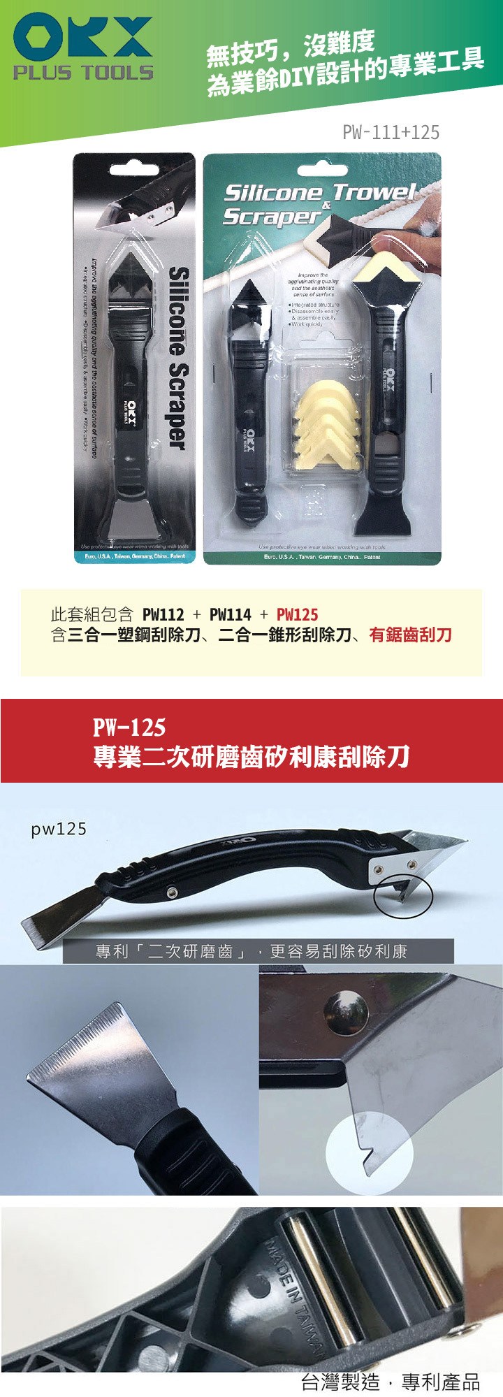 ORX 矽利康刮除刀鋼邊刀+有齒鋼刀 (PW-125)