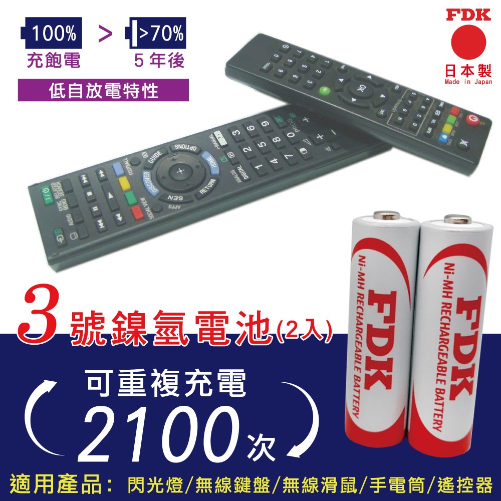 【FDK】日本製鎳氫 充電電池3號(AA)2入 低自放電
