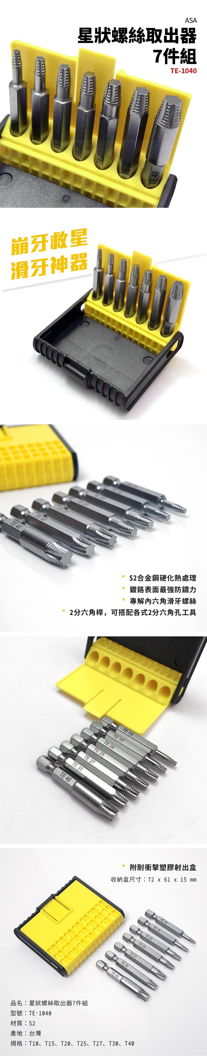 ASA 星狀螺絲取出器7件組 (TE-1040)