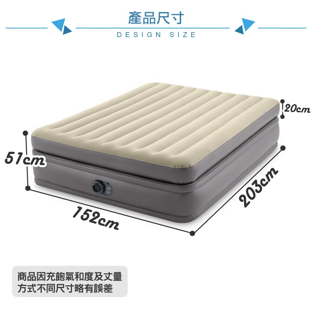 【INTEX】豪華雙氣室加高款雙人加大充氣床墊(寬152x高51cm) 15020281(64163ED)
