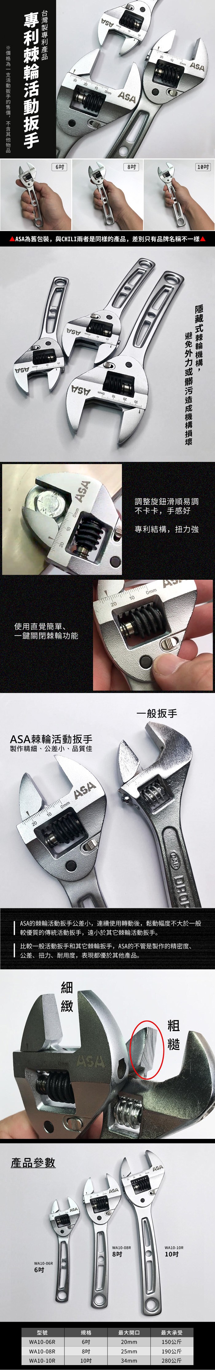 10吋棘輪活動扳手 台灣製 CHILI/ASA 專利棘輪活動扳手 快速扳手較梅開扳手和一般棘輪扳手好用
