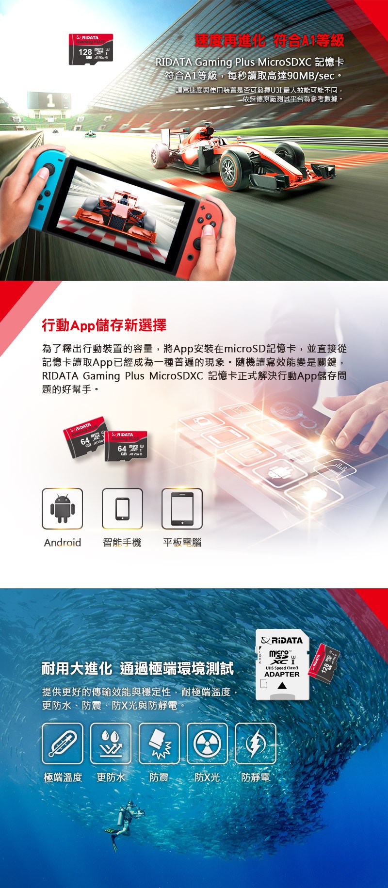 錸德Gamingcard MicroSDXCUHS-I U3_A1 128GB記憶卡