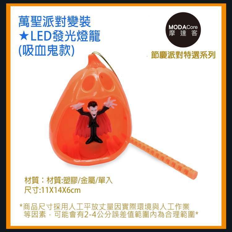 MODACore 摩達客 萬聖派對變裝 LED發光燈籠 吸血鬼款 橘色 1組 11x14x6cm