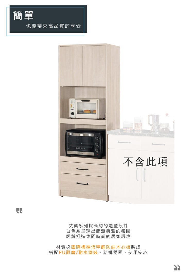 文創集-南亞塑鋼 尼特 南亞塑鋼2.2尺雙開門拉盤中高電器櫃/餐櫃/收納櫃-66x40.8x130.7cm免組