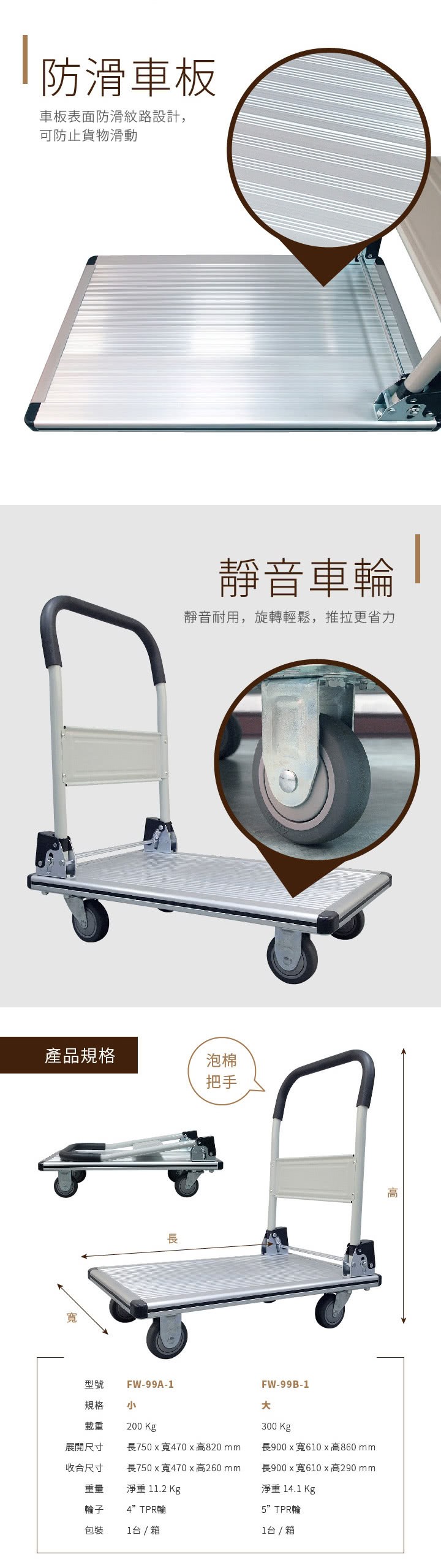 【大船回港】鋁製折疊平板推車-大 (FW-99B-1)