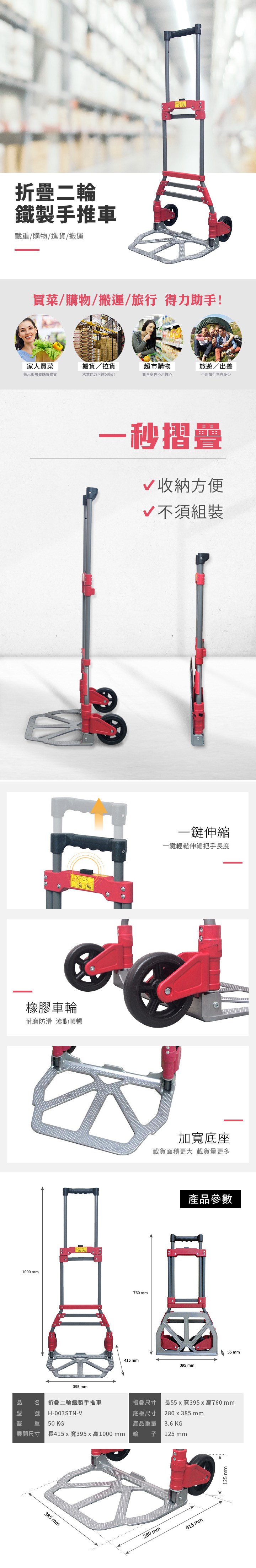 【大船回港】折疊二輪鐵製手推車 (H-003STN-V)