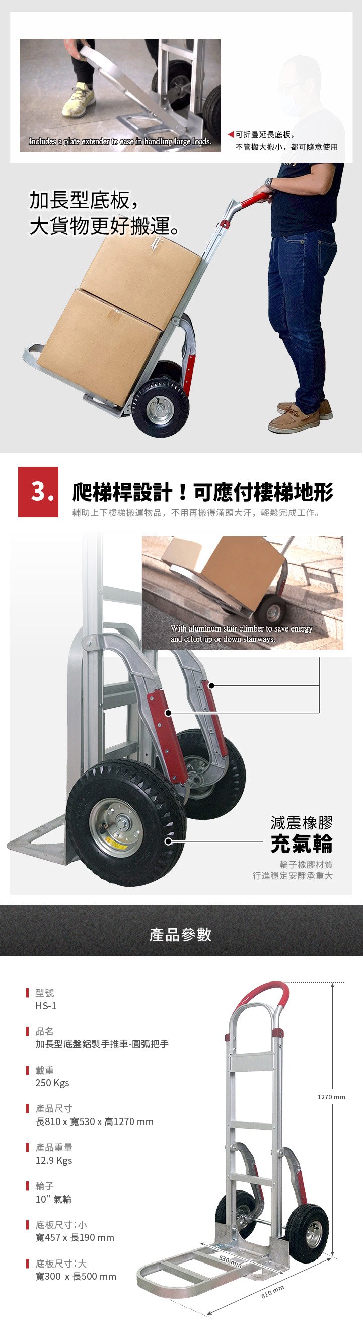 【大船回港】輕型爬階鋁製手推車-低把手+加長底板 (HS-33S-5)