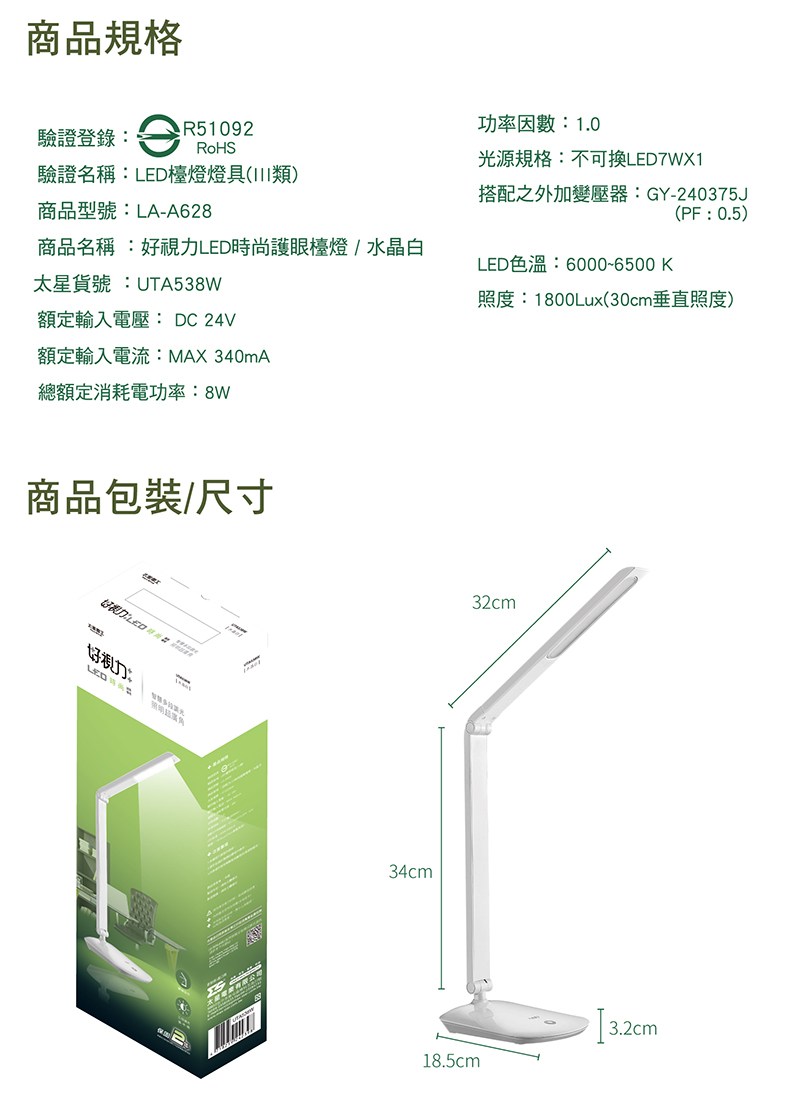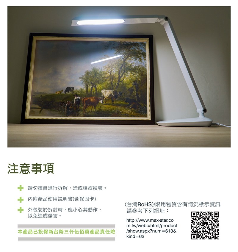 1.多轉向調光:自由延展、升降、旋轉,調節最佳照明範圍。