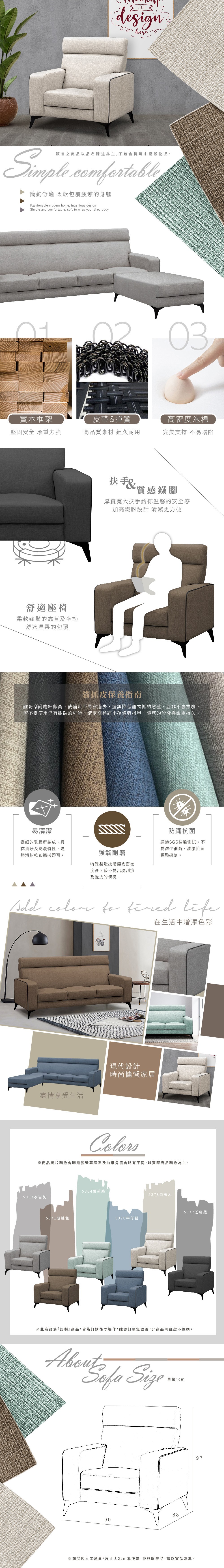 ASSARI-薰伊高背支撐單人座貓抓皮沙發雙色