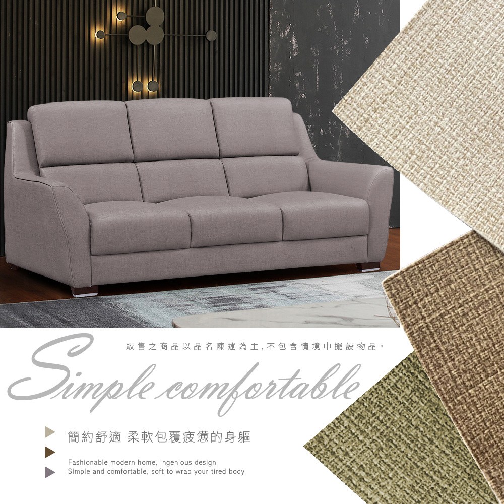 Homelike 喜家居三人座抓皮沙發(2036)