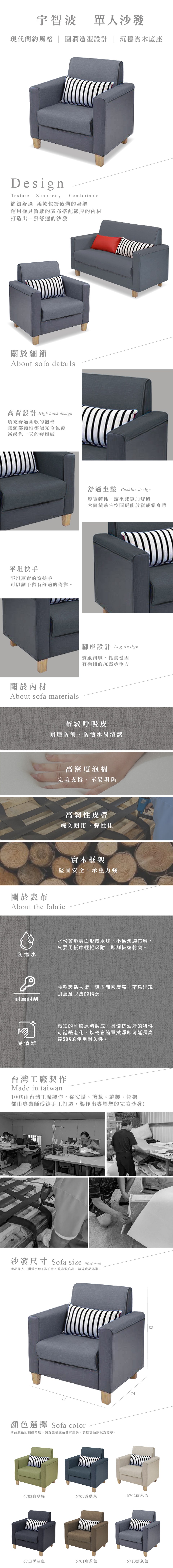 【本木】宇智波 台灣製簡約舒適1人坐沙發-雲灰色#6710