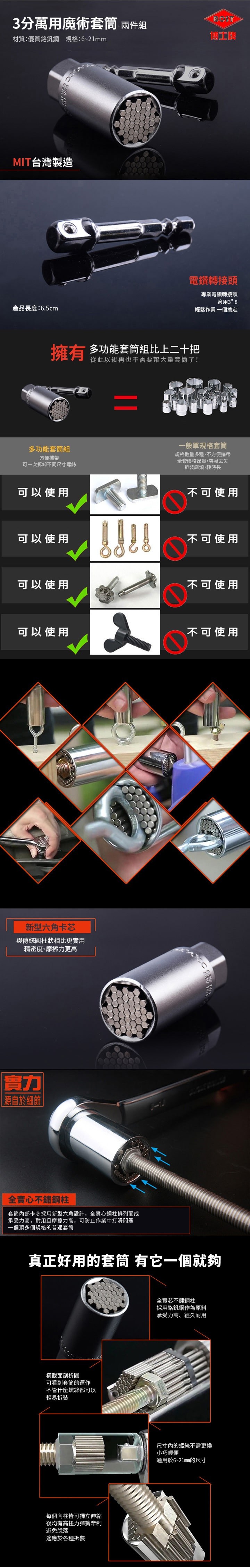 博士牌 3分萬用魔術套筒-兩件組6-21mm (不含扳手)