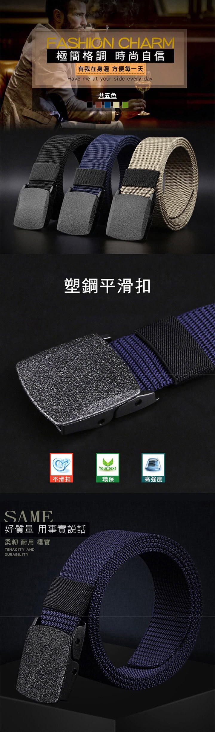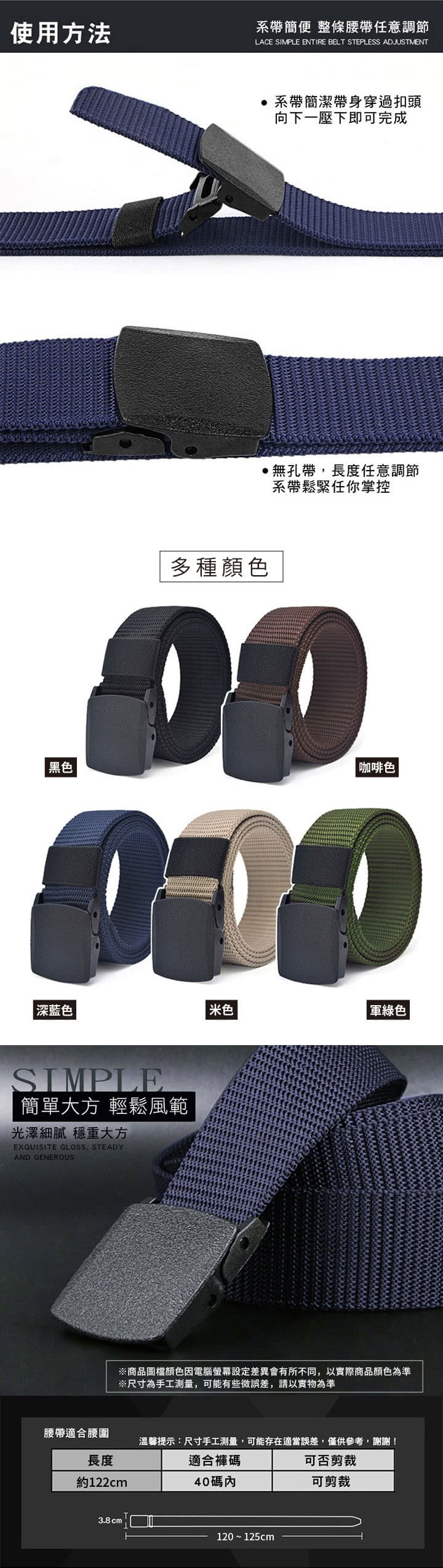 【大船回港】塑鋼頭無金屬腰帶-5色米色