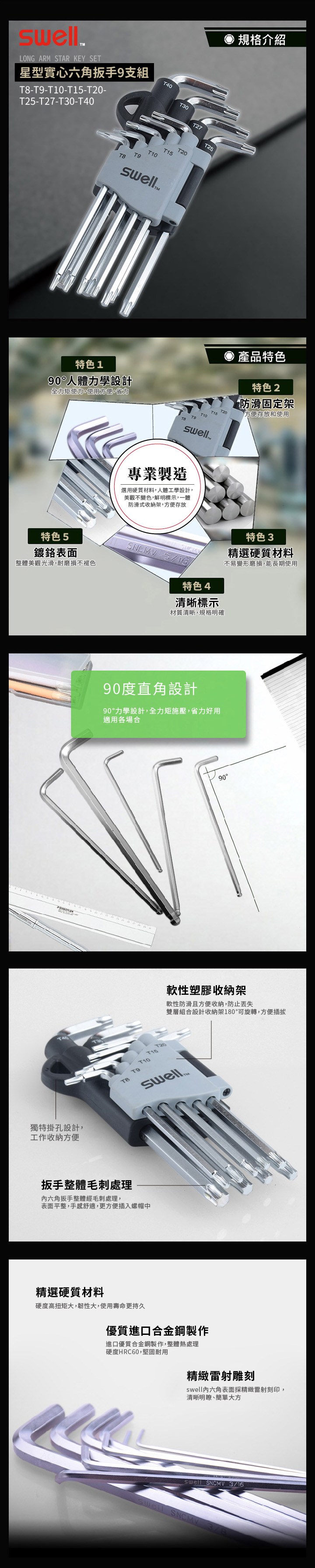 SWELL 星型實心六角扳手9支組T8-T40 (096-44TL)